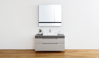 PLYWOOD(合板)が持つ積層の表情をそのままに活かした"PLY″のミニマルな洗面化粧台。日常での使用性に配慮し、天板には耐水強度の高い人工大理石を採用。無駄をそぎ落とした洗練美の中に、ユーザビリティを追求しています。