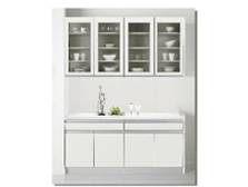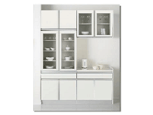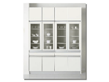 自慢の食器から普段使いのものまで「隠す収納・見せる収納」が思いのまま。可動式棚のため、こまごましたキッチングッズの整理収納にも便利です。